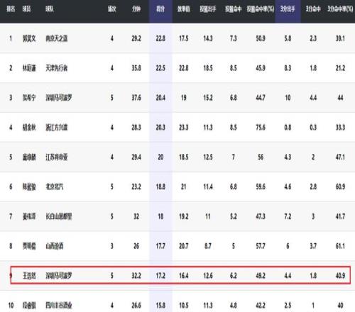 来到CBA联赛,王浩然第一场得到8分8篮板,第二场得到21分4篮板,第三场贡献26分8篮板,第四场得到18分5篮板,第五场得到15分7篮板。王浩然场均得到17.2分排名本赛季本土球员得分榜第九,场均抢到6.4个篮板排名本土球员篮板榜第十。